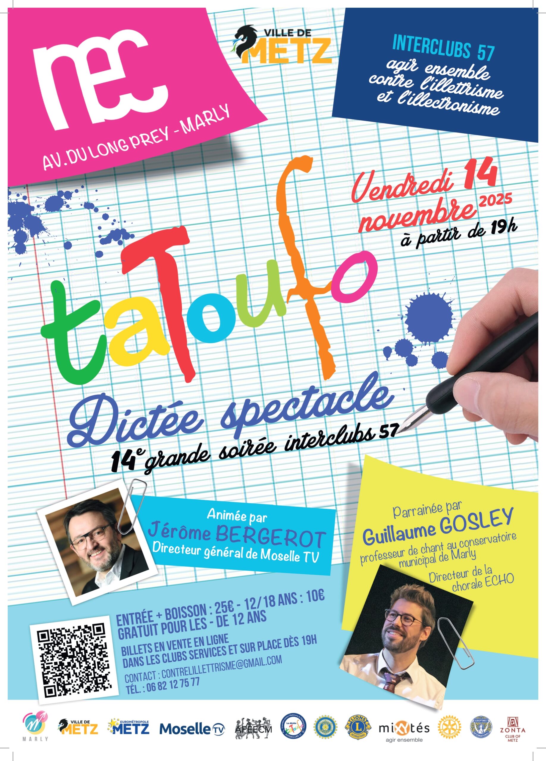 06 Oct TATOUFO Le 14 Novembre DICTEE SPECTACLE avec l’Interclubs57
